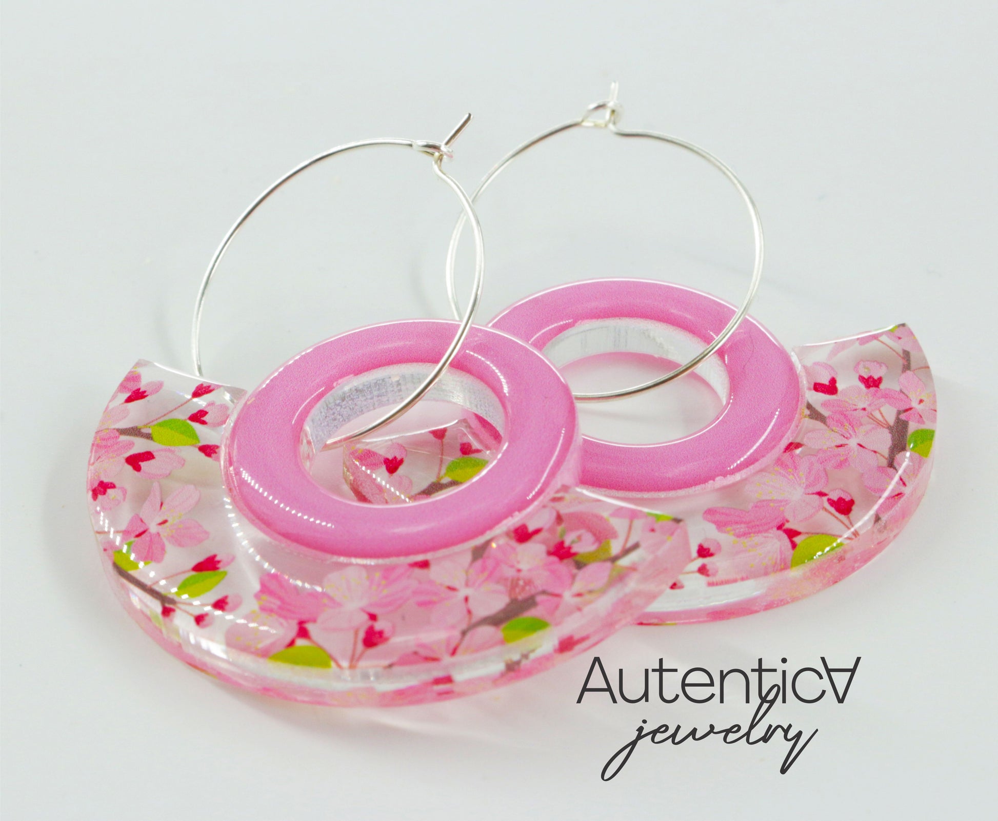 Acrylic Glass Earrings / Cherry Flower Earrings / Colorful Earrings