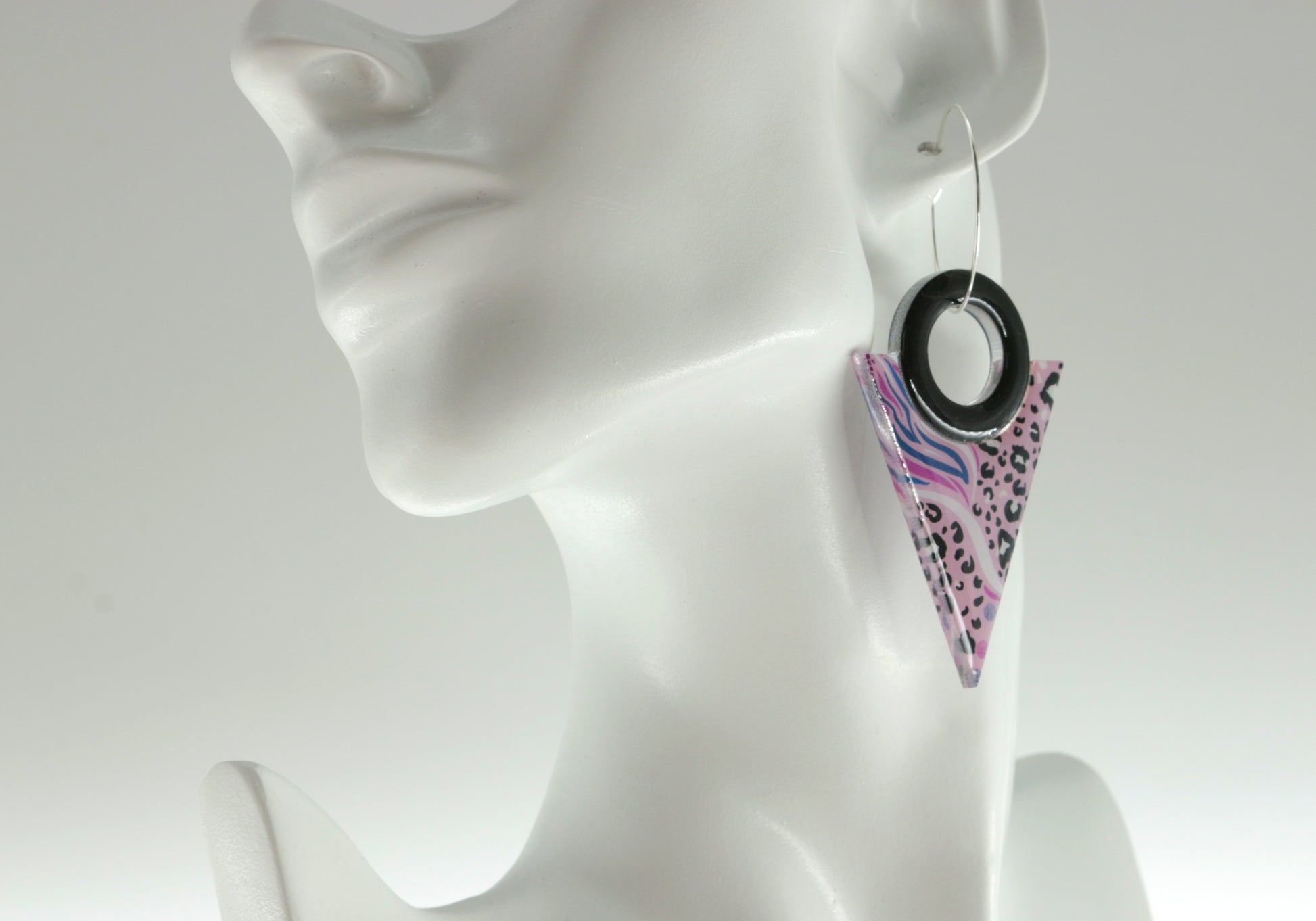 Acrylic Glass Earrings / Animal Print Earrings / Purple and Black Earrings