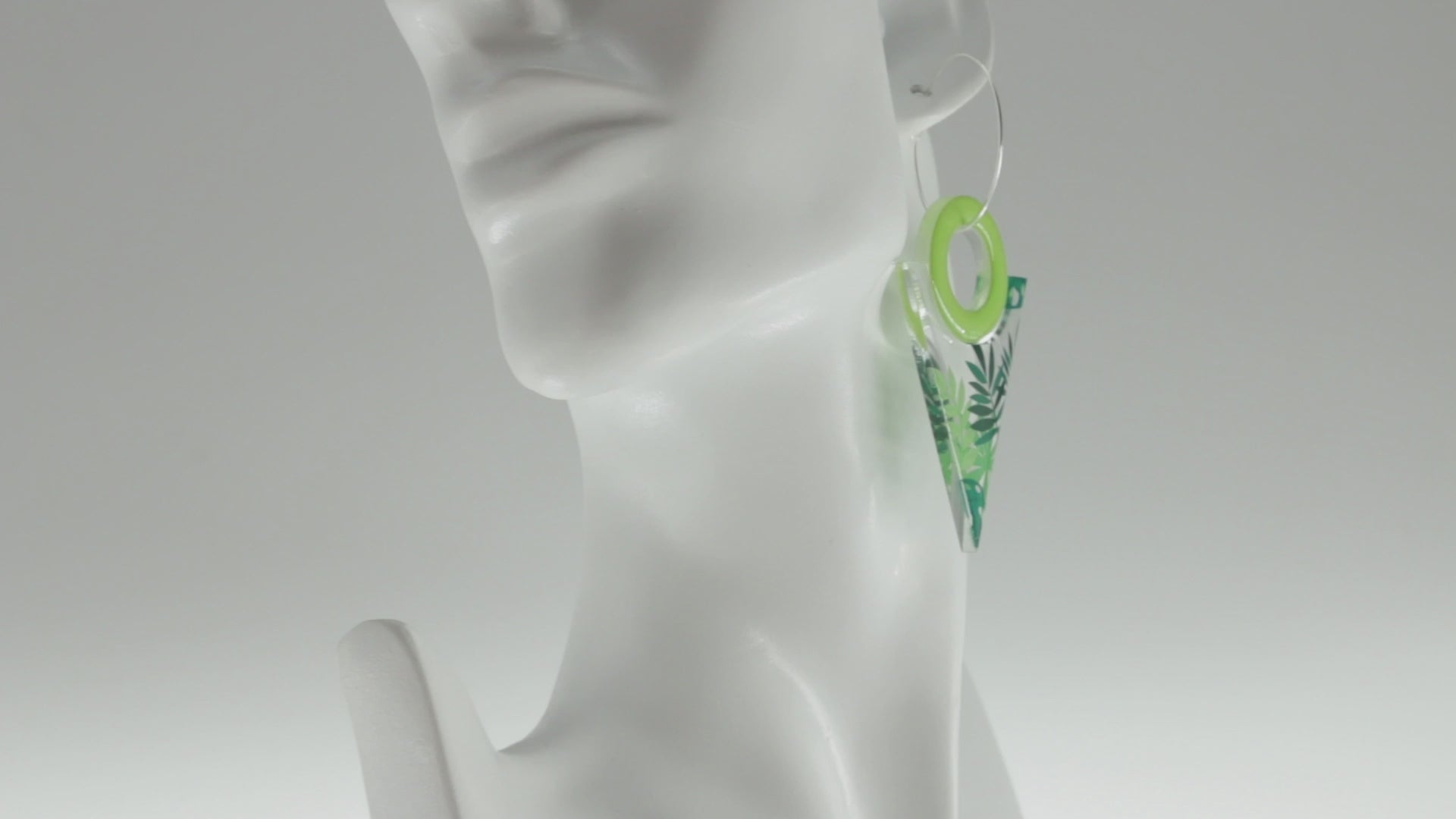 These Acrylic Glass Floral Print Earrings capture the essence of tropical verdure with their lush, tropic green hue. Made from lightweight acrylic glass, these earrings are perfect for adding a touch of natural splendor to any ensemble.