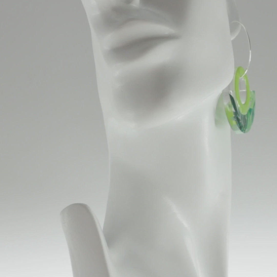 Acrylic Glass Earrings / Floral Print Style Earrings / Green Earrings