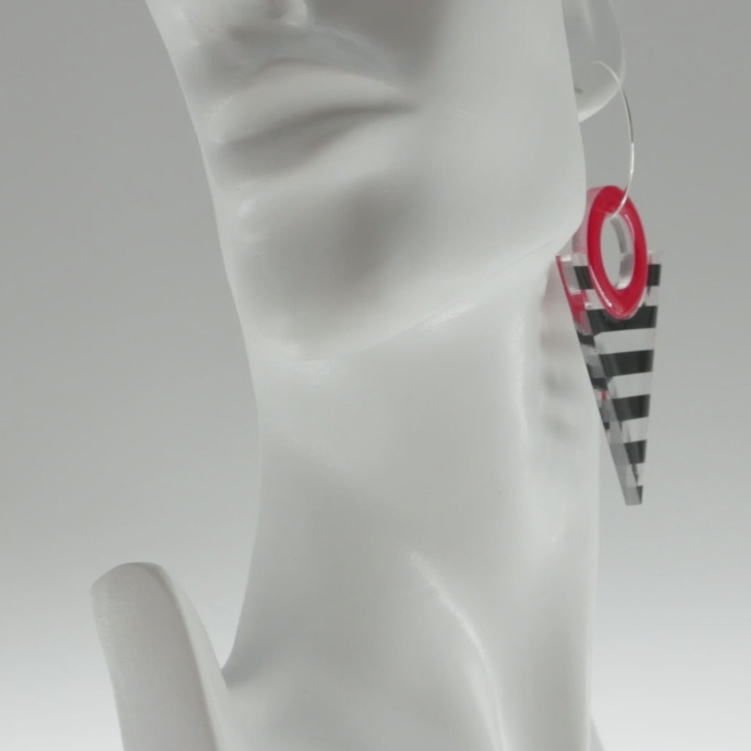 Make a statement with these modern acrylic glass earrings, crafted in a classic retro style with bold red and black colors. Show your sophistication and flair with this beautiful piece of jewelry, crafted to last and designed to turn heads.